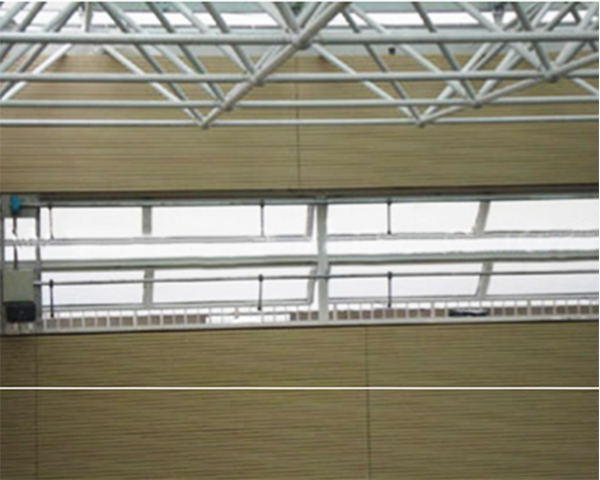 該產品可用於一般工業(yè)廠房、溫室、倉庫(kù)、車(chē)庫、車(chē)站、碼頭、體(tǐ)育館、影劇院、候(hòu)機樓等建築場所。主要由鋁合金專用型材、專用鉸(jiǎo)鏈、碳脂玻璃(或夾層玻璃等)、密封橡膠、推杆、控製元件、動(dòng)力單元等組成。
